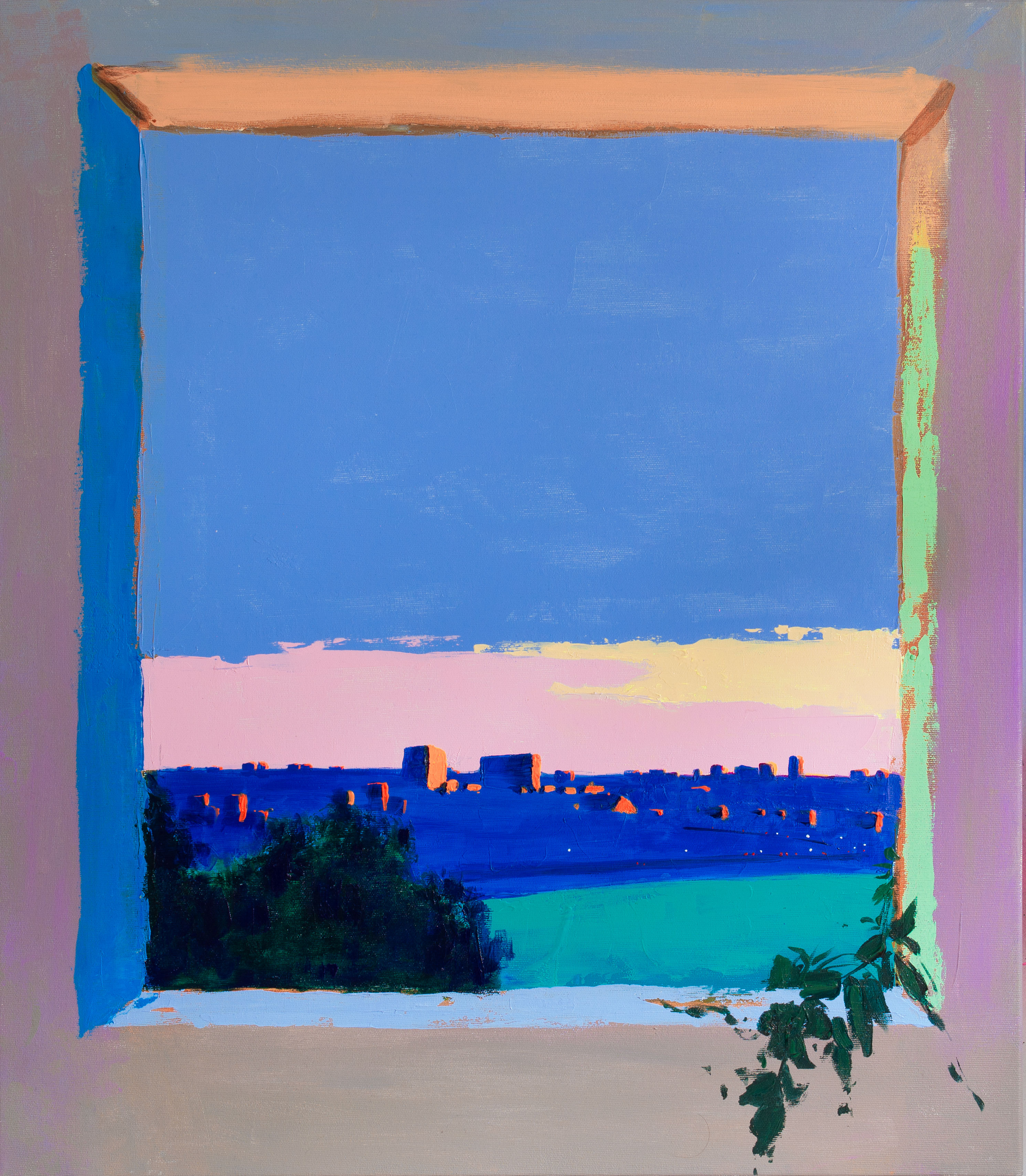 The window here isn’t just architecture it’s a frame for everything beyond it. A separation between the quiet interior and the glowing, distant world outside. I used flat planes of color to simplify everything, reduce it to emotion rather than detail.