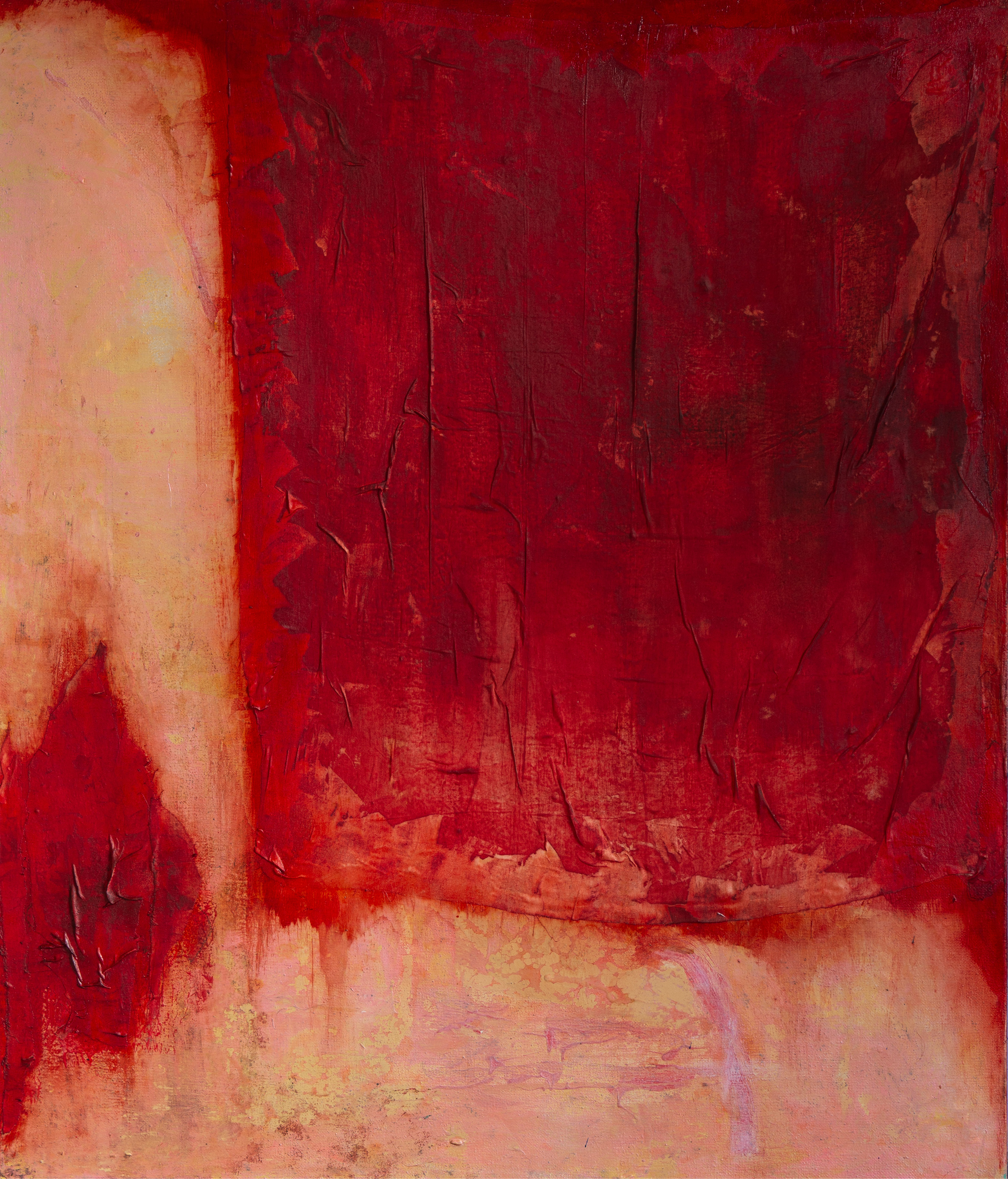 In this work, I wanted to explore how color can hold emotion long after shapes disappear. The deep crimson field grew layer by layer, almost like a landscape formed by feeling rather than earth. Its texture carries tension, warmth, and something unresolved — while the softer peach tones beneath it offer a quiet place to breathe. For me, Crimson Peak is about contrast: between intensity and calm, surface and depth, what we show and what remains hidden. It’s a piece born from intuition, touch, and the raw honesty of paint itself.