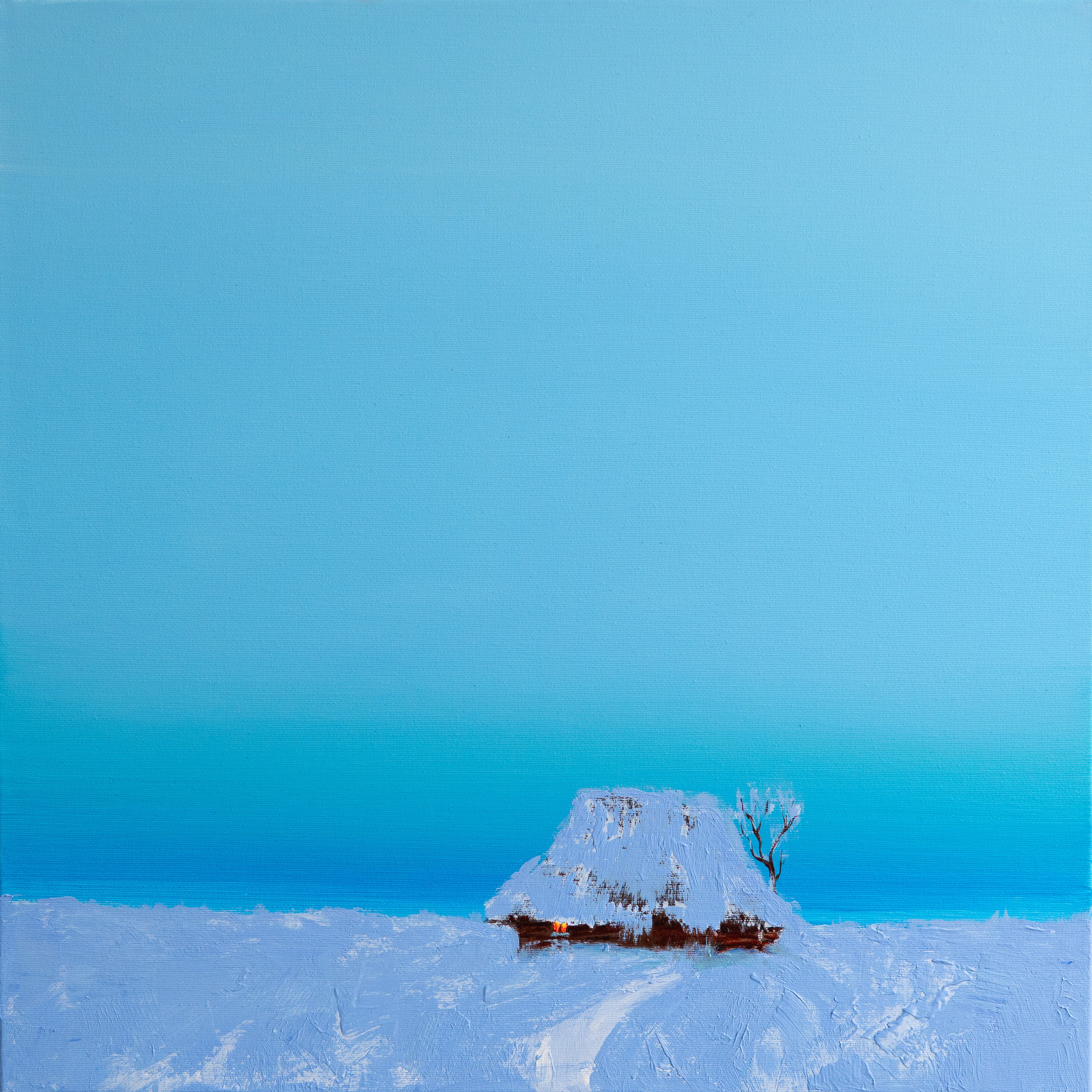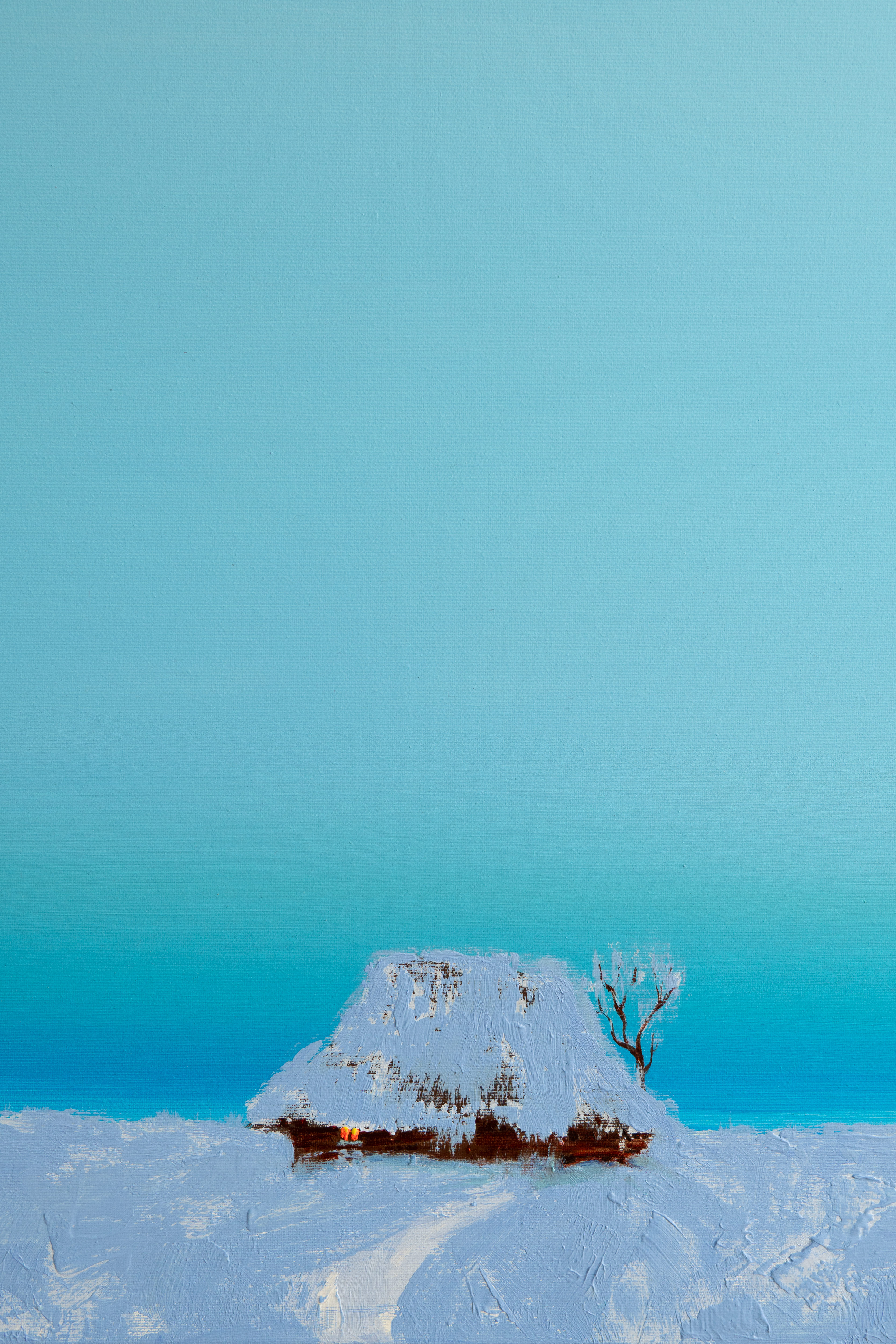 In this work, I wanted to capture the feeling of winter silence and solitude. The icy blue tones reflect a frozen landscape where time seems to slow down, and sound almost disappears. The small house stands as a quiet refuge